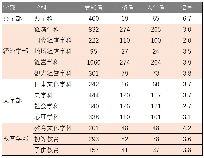 学部:経済・法・文・外国語・教育・医療技術学部