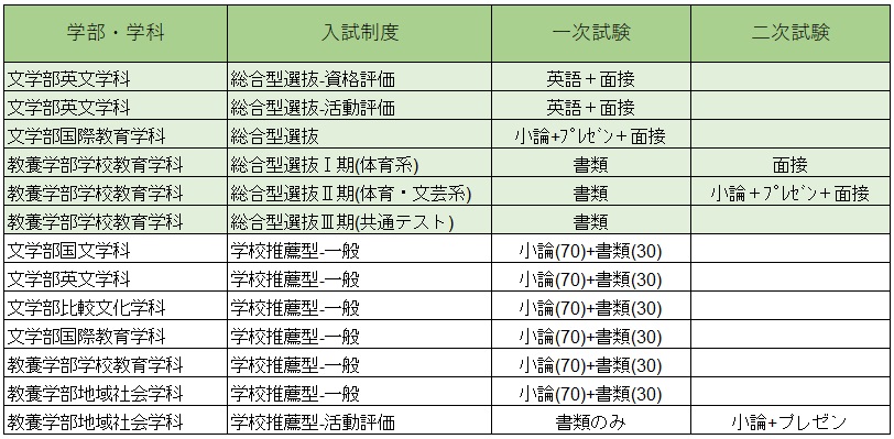 総合型選抜で英文学科か国際教育学科を受験する場合
