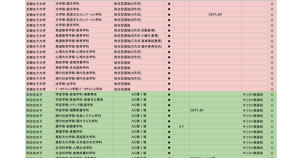 ■関西の女子大学|総合型選抜の出願資格